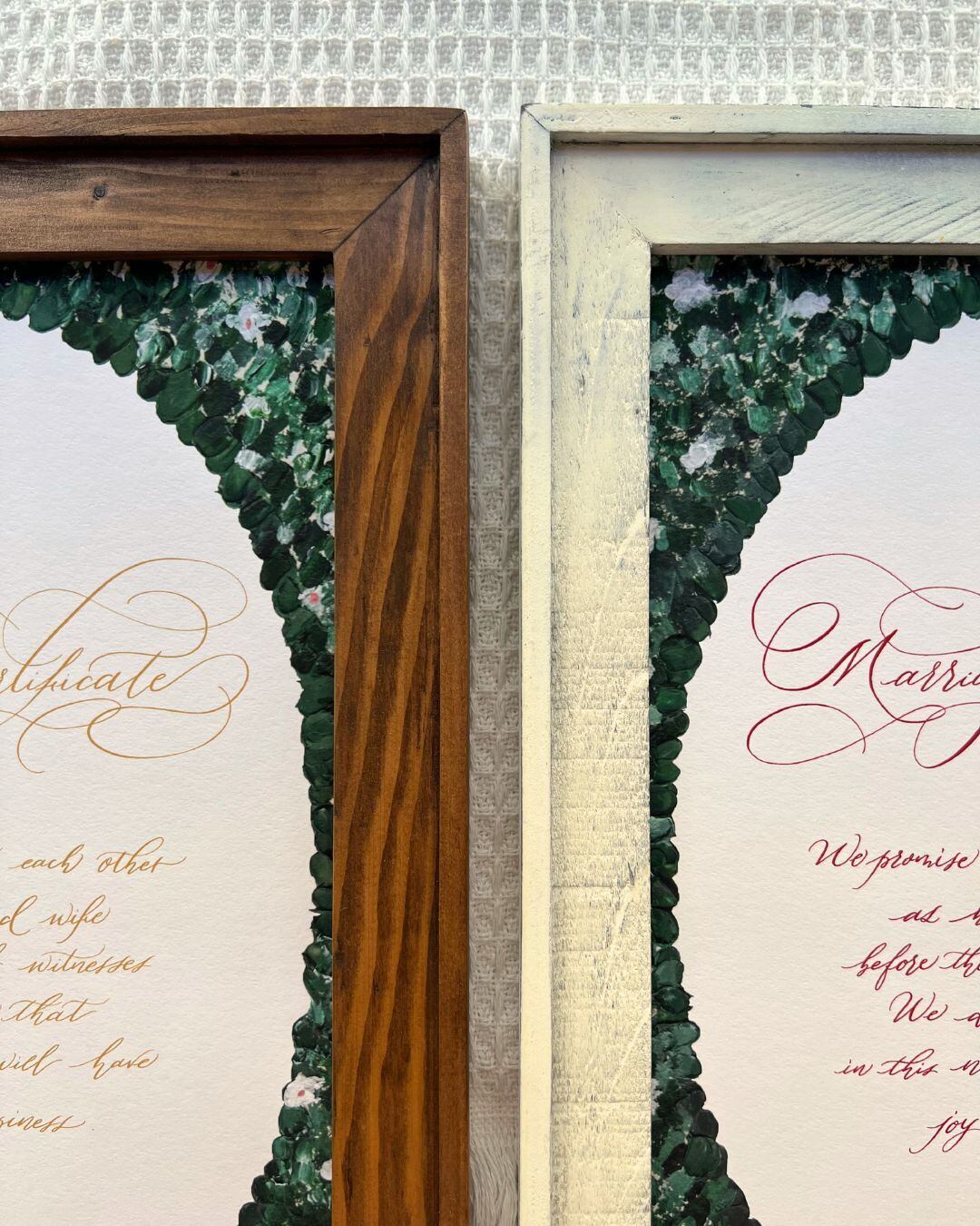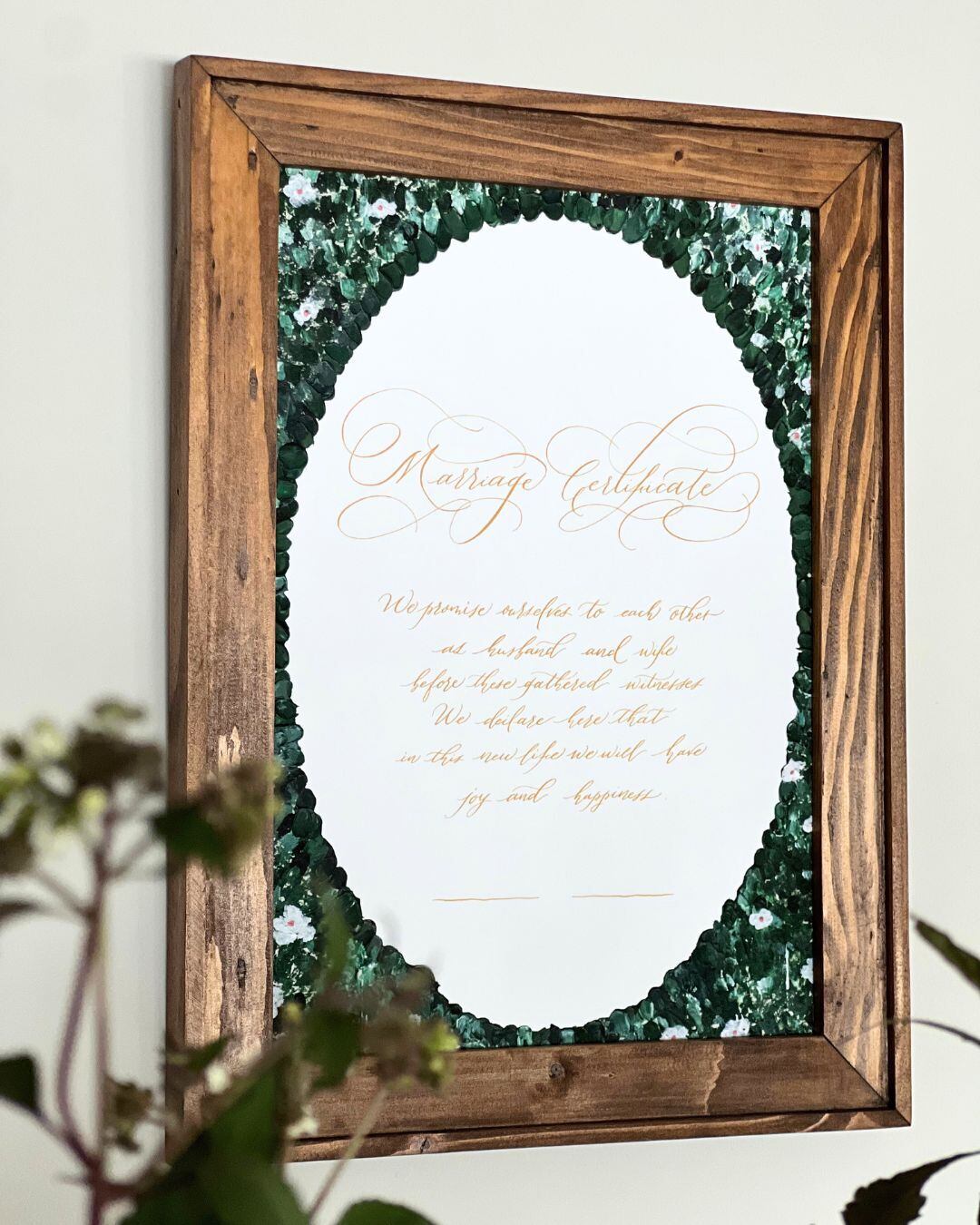 このために書き下ろしたアートとカリグラフィーを使った結婚証明書です。